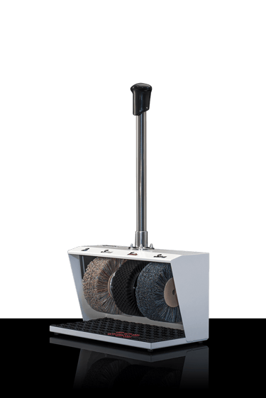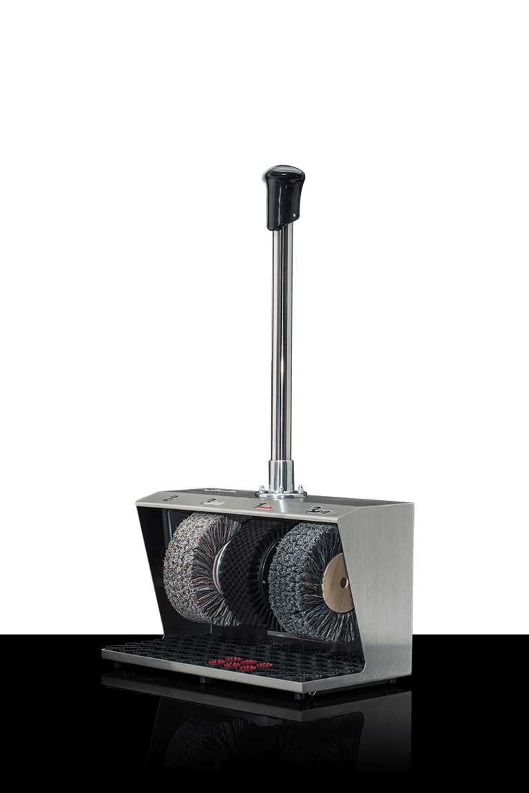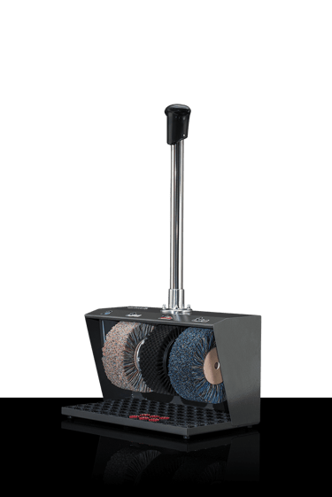 When it comes to performance, this weighty ground-mounted machine plays in the top league. Just like the steel housing, the three rotating brushes with an impressive diameter are extremely robust in design and well-suited for continuous use in shopping centres or highly frequented hotels. Unsurpassed top form is also reflected in the options of finishing for the housing: in high-gloss chrome makes, this powerhouse becomes invisible as it mirrors its surroundings, while in 24-carat gold it reflects pure luxury. Rely on a true star.